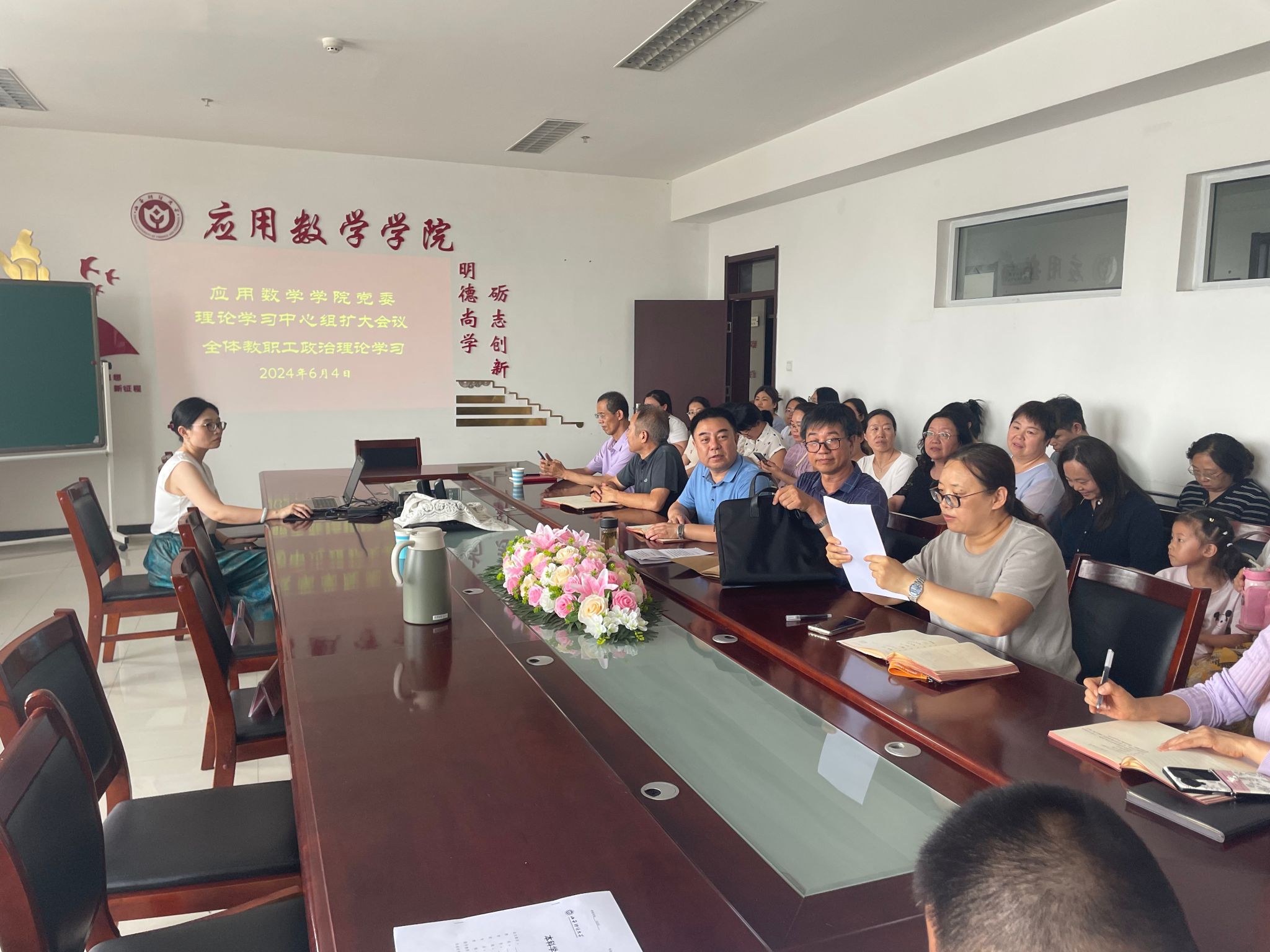 在学院会议室召开中心组扩大会议,面对全体教职工开展政治理论学习,深入学习习近平总书记关于全面依法治国的重要论述,把习近平法治思想贯彻落实到全面依法治国全过程。