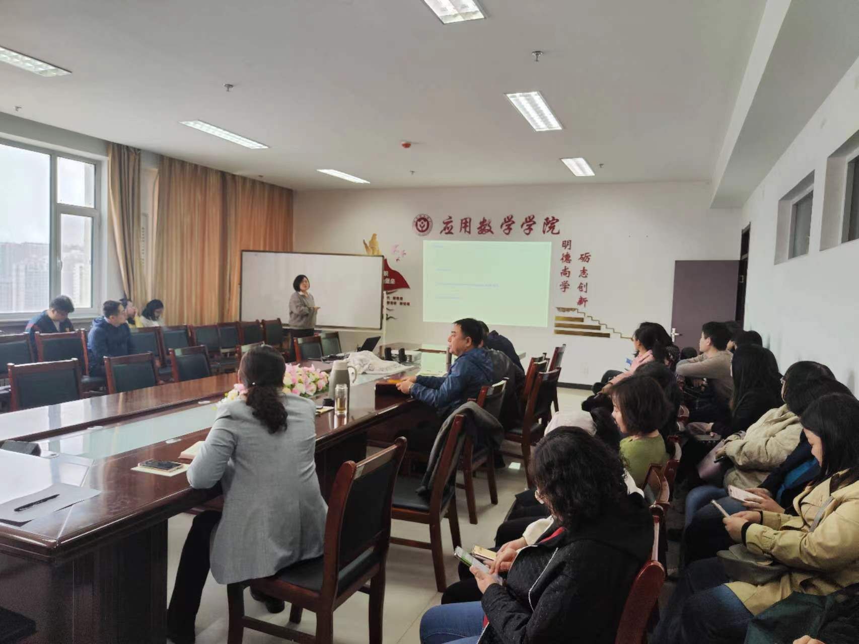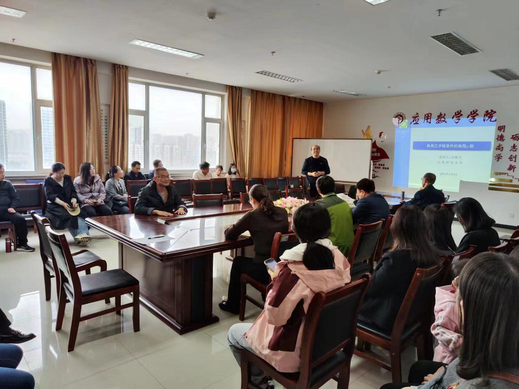 会议室,我院刘慧敏博士、白鹏飞博士分别做了题为“NLS approximation for the ion Euler-poisson equation” 和 “具有几乎链条件的有限P群”的学术报告。我院多名中青年教师聆听了报告会。