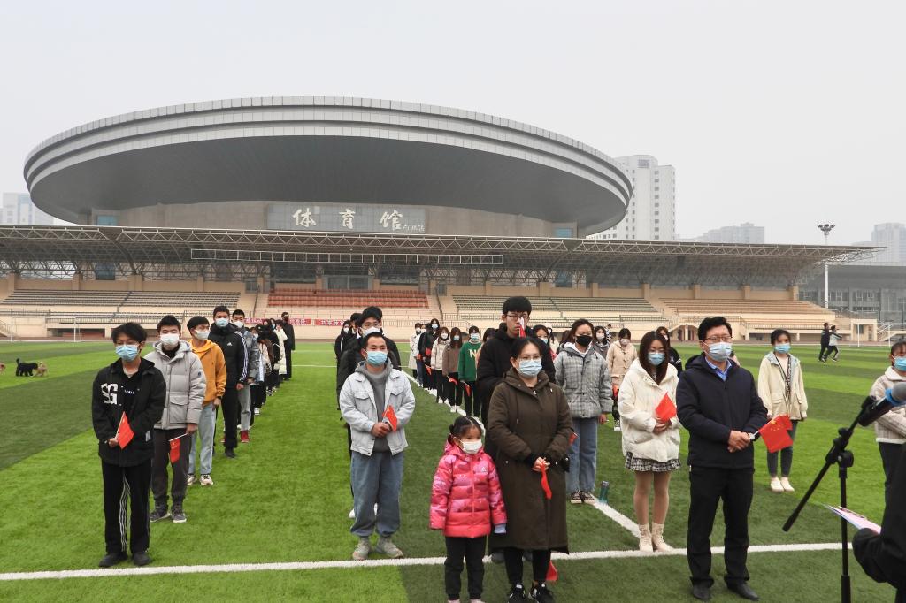 在坞城校区体育场举行庄严的升国旗仪式。学院领导、辅导员及学生代表参加。