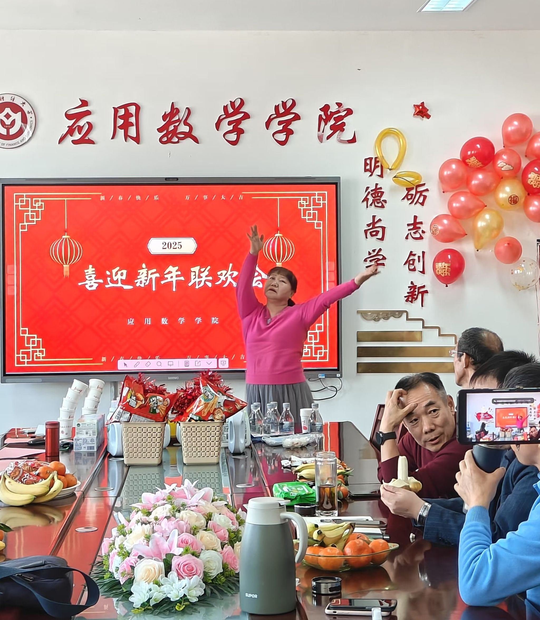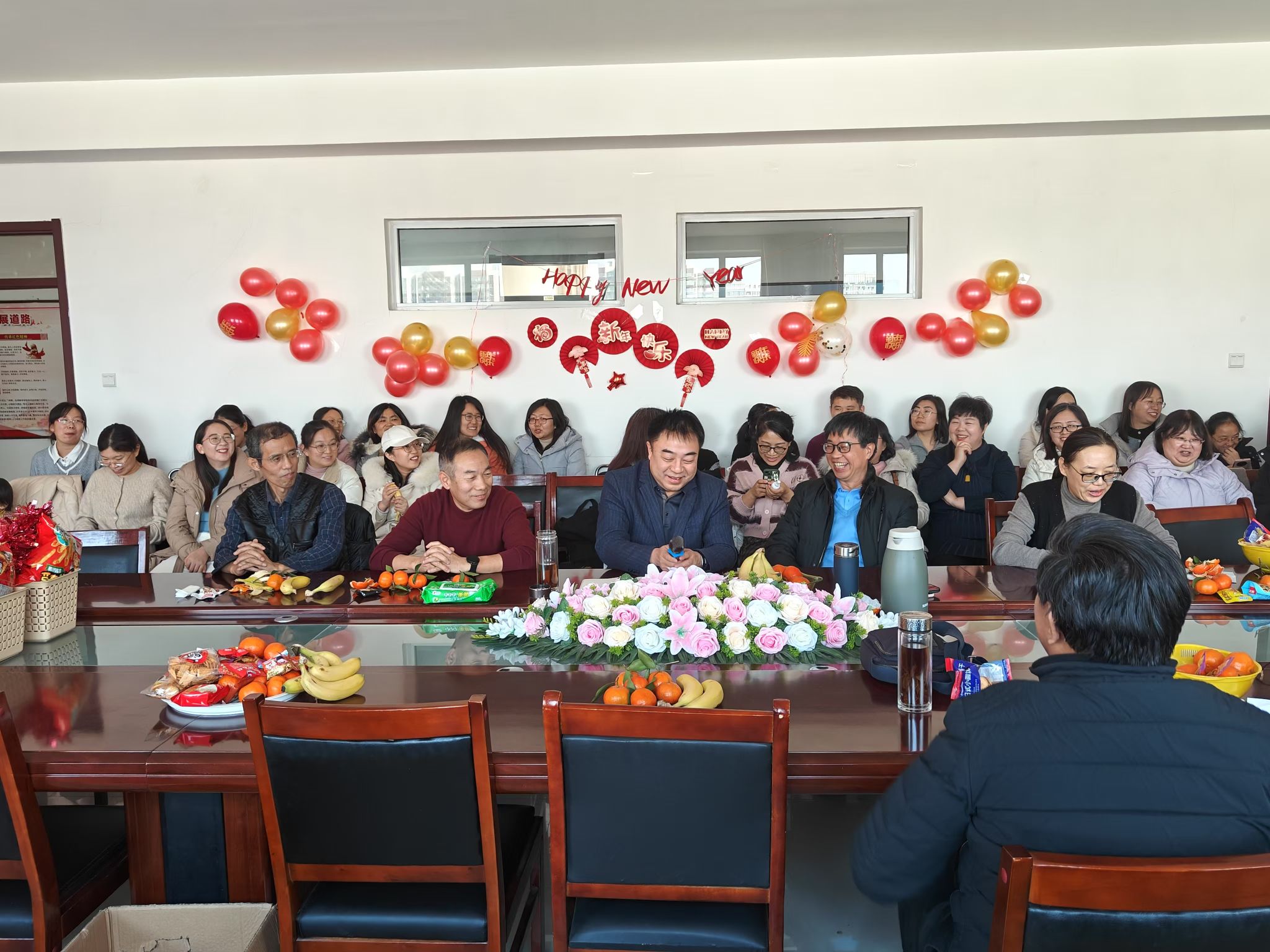 于2025年12月24日成功举办了迎接2025年元旦座谈会,学院全体教职工参加了本次活动。