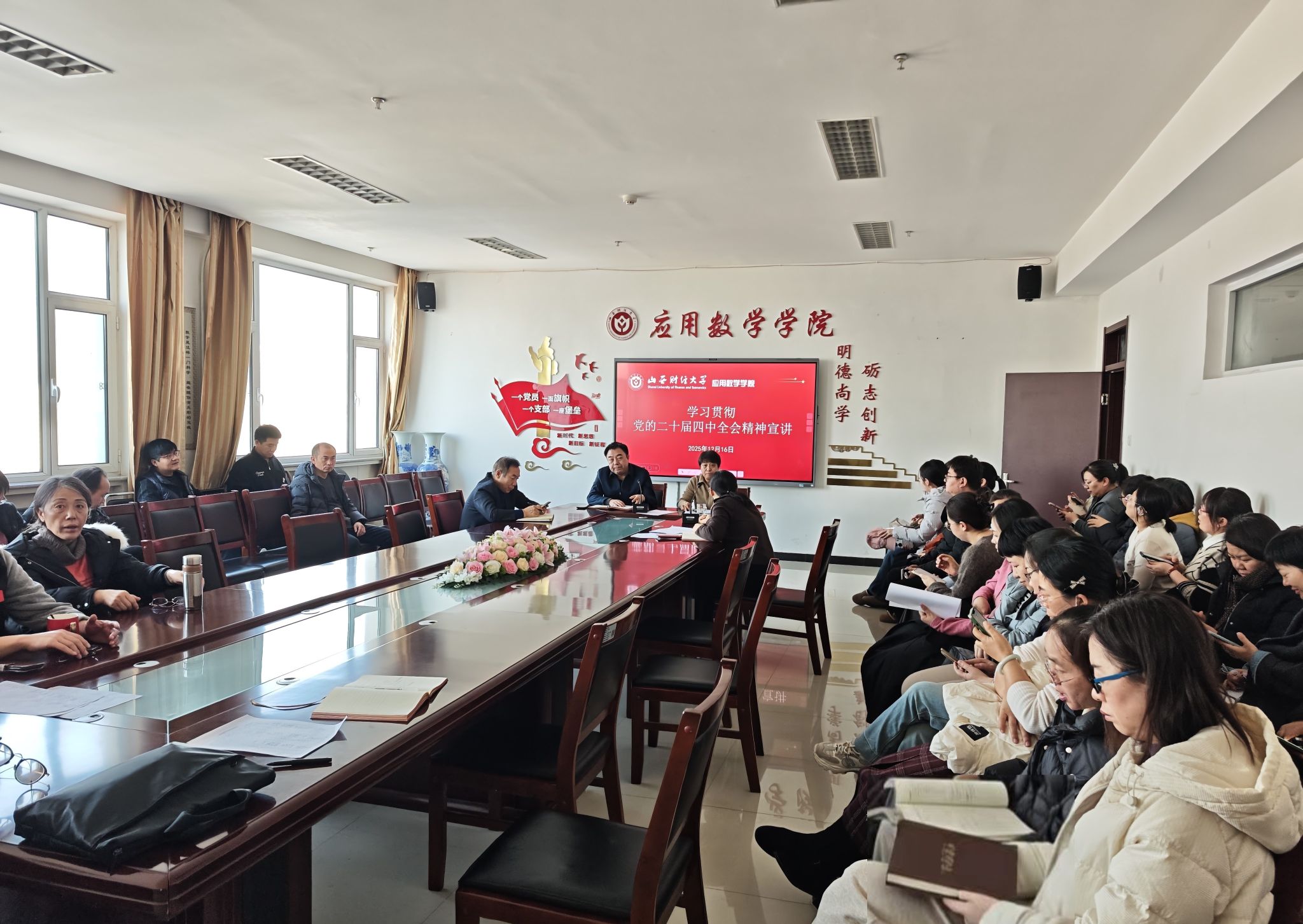 学院号召全体党员、教师以“实干担当、接续奋斗”的昂扬姿态,把学习成效转化为推动应用数学学科高质量发展的强大动力,为“十五五”新征程贡献数学智慧。
