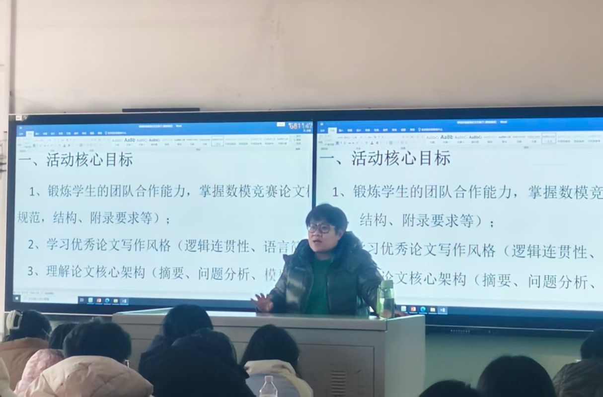 1月14日下午,活动正式启动。本次活动负责人李静老师向同学们阐释了本次活动的目的及要求。随后,2025年全国大学生数学建模竞赛一等奖获得者、2025年山西省数学建模竞赛“金地杯”获得者——太原科技大学电气工程及其自动化专业本科生张宇杰同学,为同学们分享了建模参赛经验。张宇杰同学专业排名始终位列第一,荣获数学建模国家一等奖、“金地杯”等10余项省一等奖以上奖项,现已被推荐免试至东北大学攻读硕士研究生。他分享了从备赛时的艰辛坚守、遭遇难题时的攻坚克难,到最终取得优异成绩后的沉淀成长,每一句话都极具感染力,为大家注入了奋进的动力。