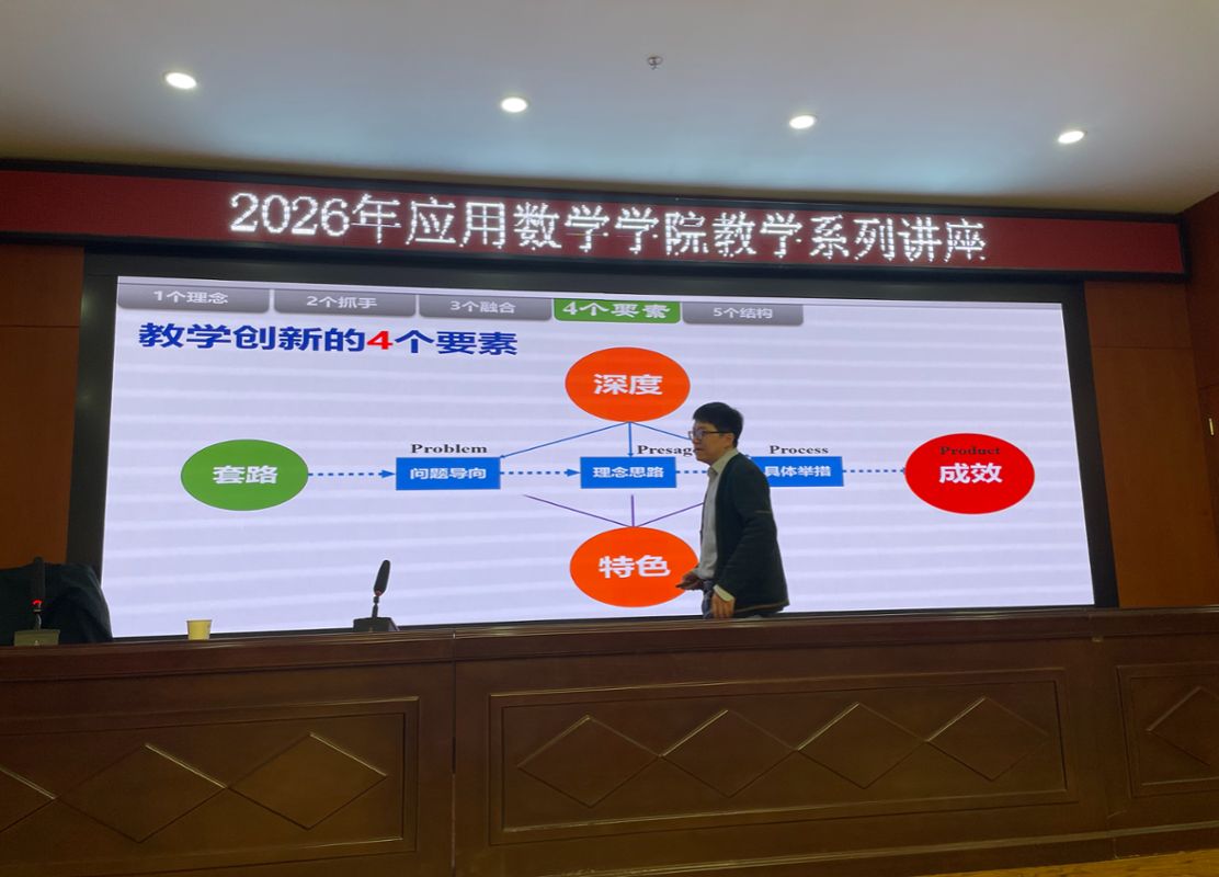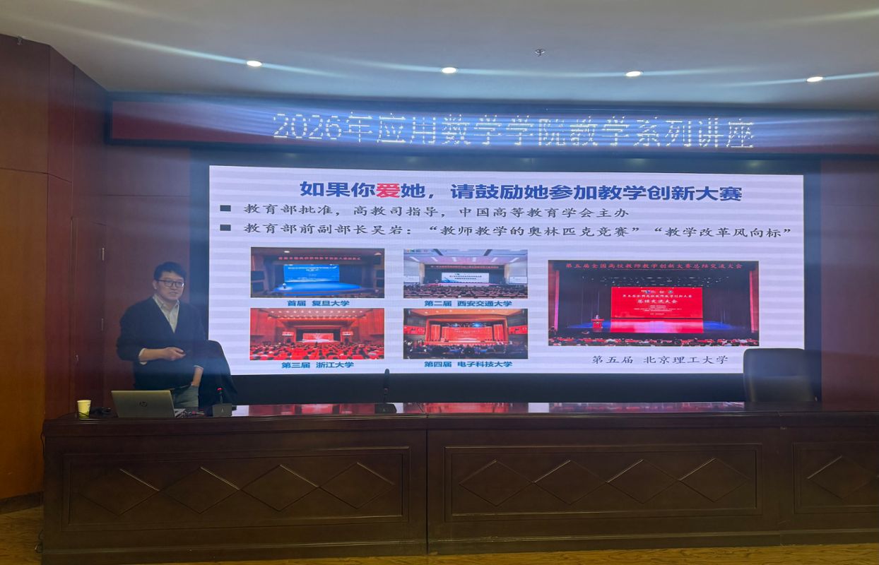 为深入推进教育教学改革,提升教师教学创新能力,2026年3月10日,中北大学数学学院惠周利老师为我院教师作题为《教学创新的底层逻辑与关键词——兼谈AI赋能大学数学教学的思考与实践》的专题培训讲座。本次培训围绕全国高校教师教学创新大赛的备赛理念、教学学术范式、课程思政融入、信息技术赋能等方面展开,内容丰富、案例翔实。