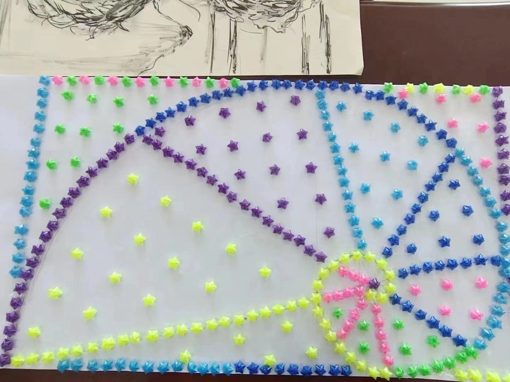 本届数学文化作品以“数学展示艺术,艺术蕴含数学”为主题,向全校学生征集与数学文化有关的摄影、绘画和手工作品。作品征集自4月启动以来,收到各类作品100余份。同学们从现有资料中汲取灵感,创作出了许多具有艺术感与创新性的作品。其中手工作品《数学曲线之美》以斐波那契数列为基础,由三百多颗手工折成的星星组成螺旋曲线。大气婉转的表现着数学曲线的美妙,而《自然中的数学之美》以数列排列的几何图形构造成一个美丽的海螺图案,海螺以黄金分割生长,该作品将数学与自然结合,直观的表现出数学的无处不在与趣味性。经过30多位大众评审无记名投票后评出一等奖3件、二等奖5件、三等奖7件、优秀奖10件。