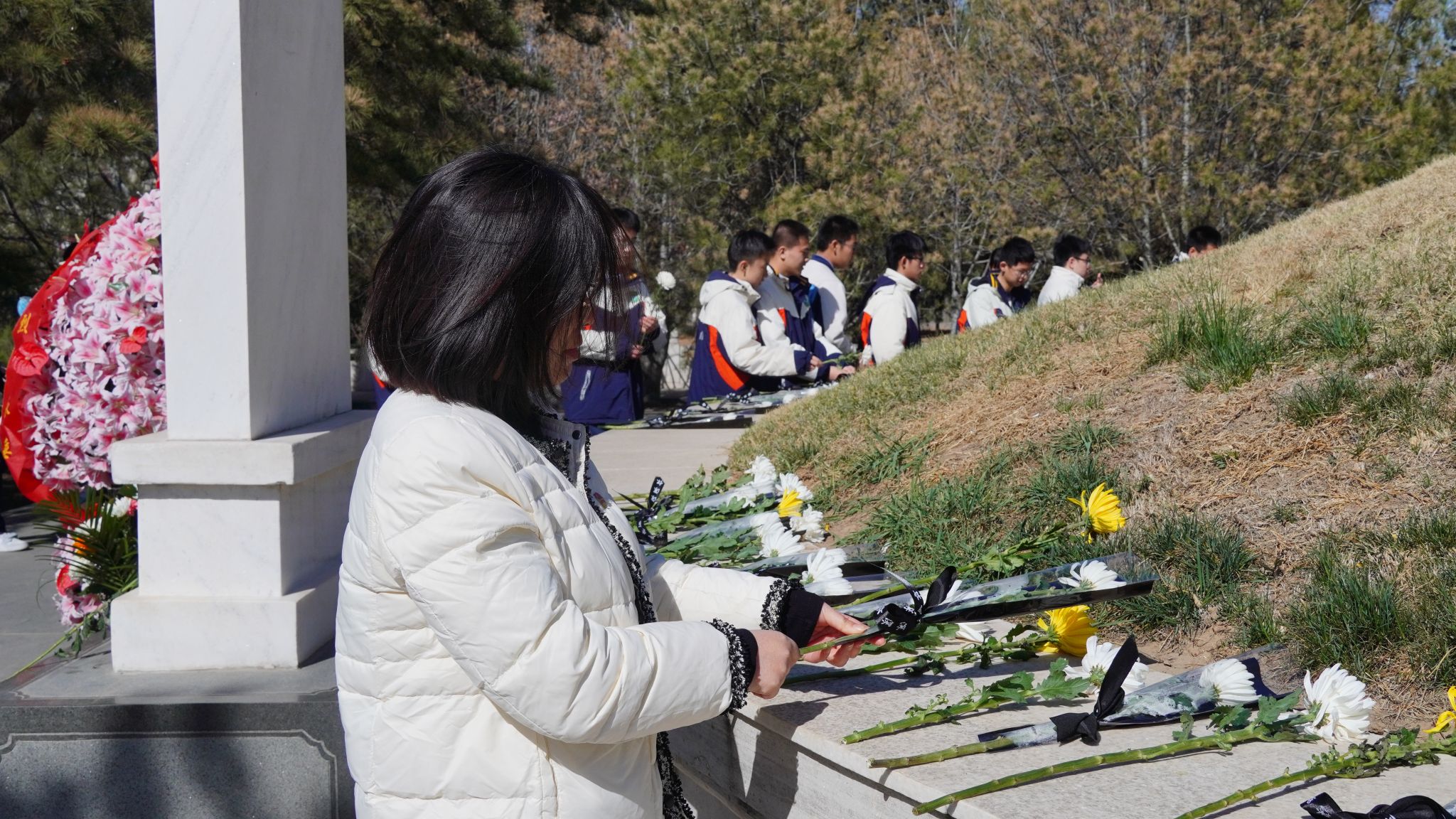 全体人员怀着对英雄的敬畏之心来到刘胡兰雕塑前,为刘胡兰烈士默哀一分钟,以寄托最深切的哀思。优秀学生代表向烈士敬献花篮,团员重温入团誓词以寄托我们对烈士的无尽思念和崇高敬意,愿烈士的精神如这鲜花般,永远绽放,永不凋零。