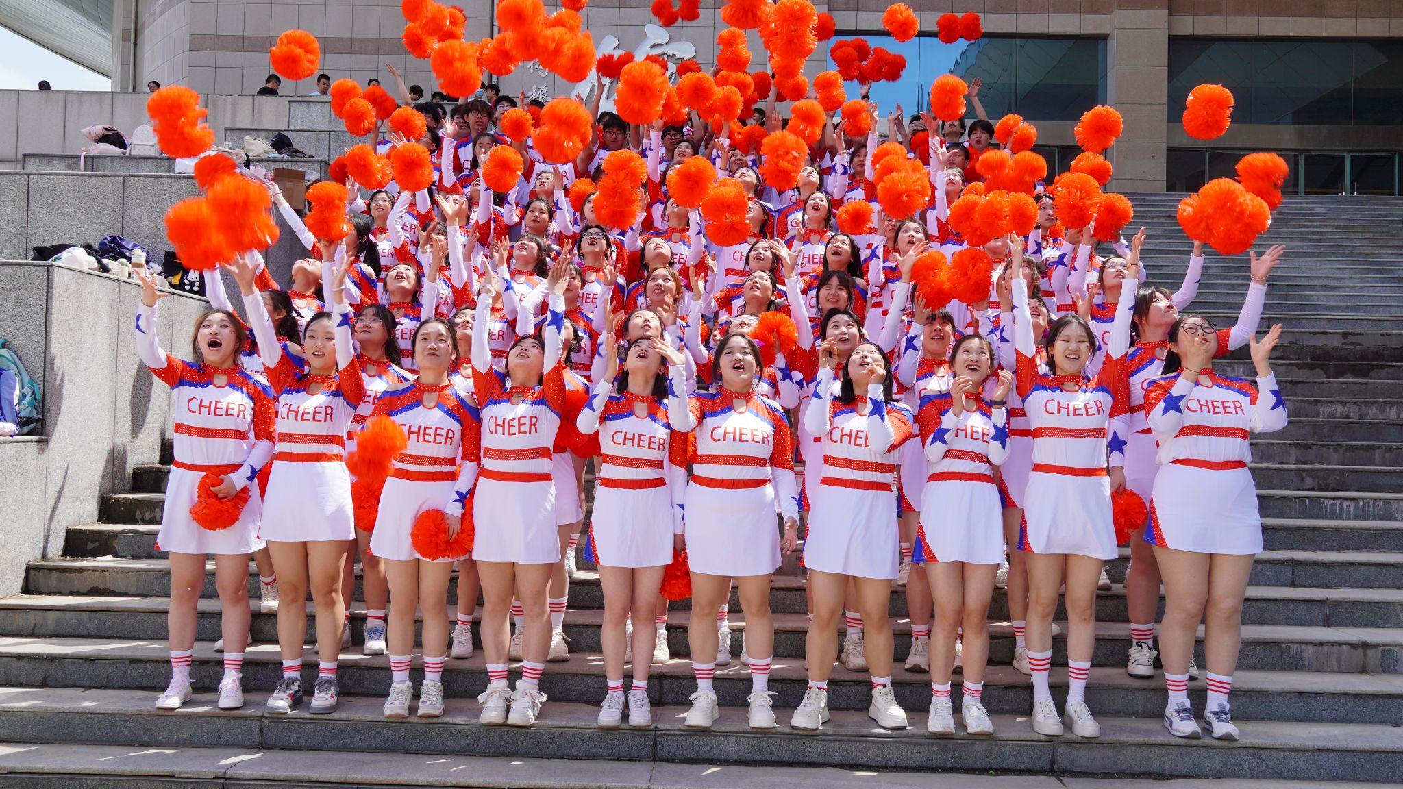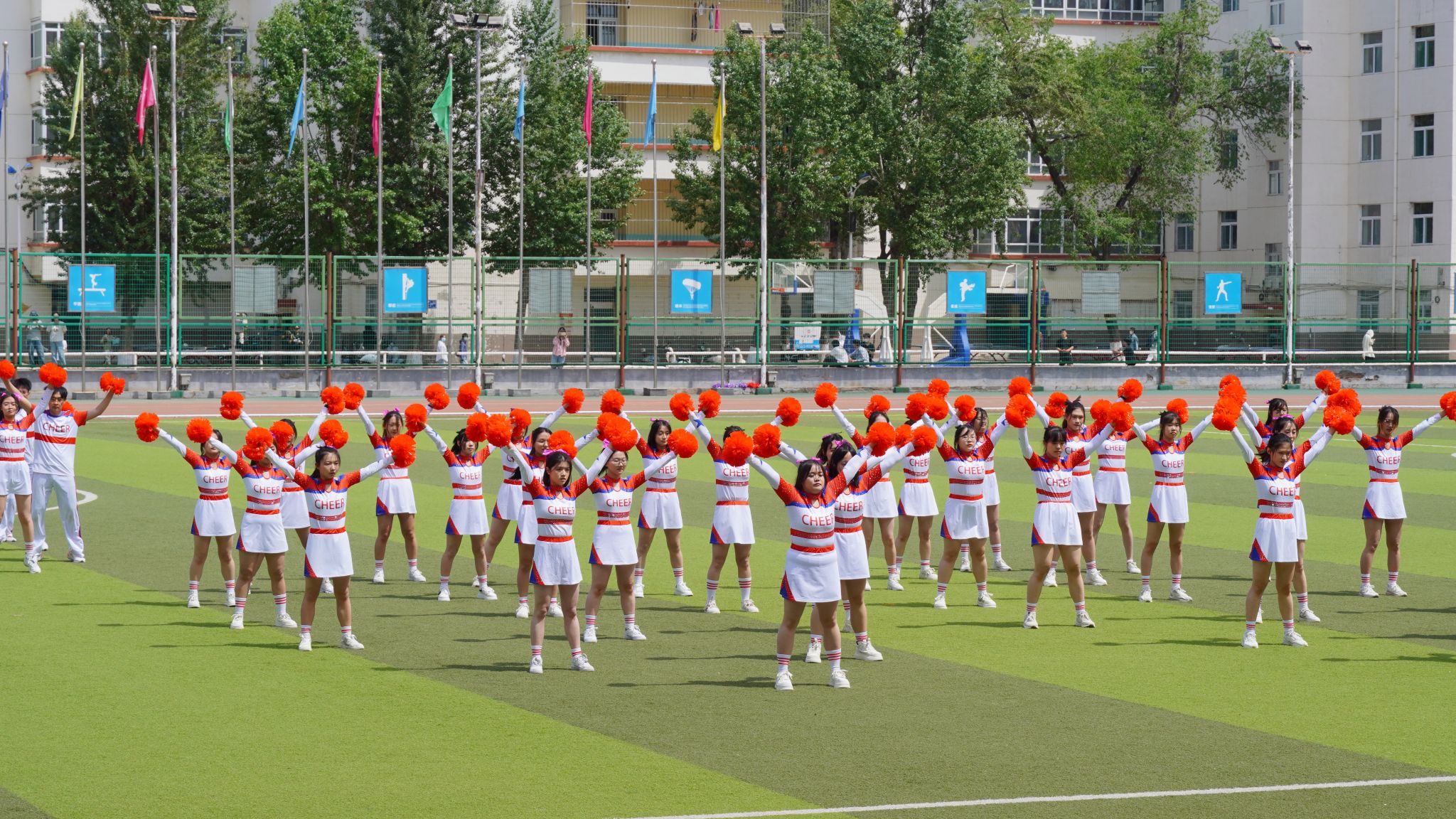 的啦啦操队员们踏着动感的节拍,昂扬地走向操场中央。随着音乐的响起,花球在她们手中飞舞,仿佛是青春的火焰在燃烧。队员们用充满力量与热情的动作,诠释着青春的活力与激情。